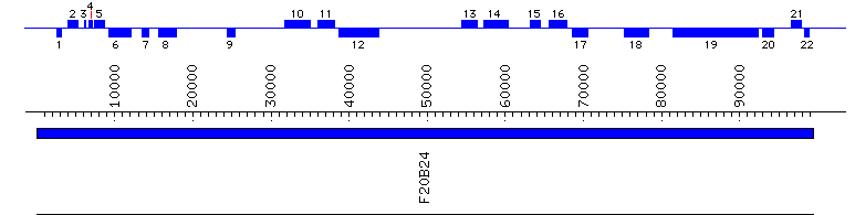 | F20B24.10 | unknown protein; similar to ESTs gb|AI993196.1, emb|Z37497, gb|N96509, gb|AA394544 |