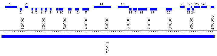 | F2K11.11 | unknown; similar to ESTs emb|F14206 and emb|F14230 |